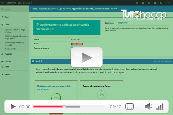 ARGOMENTI DEL CORSO ANTINCENDIO RISCHIO MEDIO