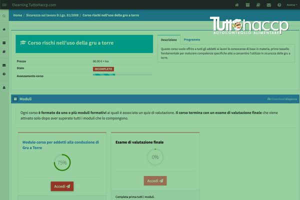 A differenza dei concorrenti qui non hai costi anticipati o di iscrizione, pagherai solo in caso di esito positivo del test finale di verifica.Il corsista, dopo essersi registrato ed aver effettuato l’accesso alla piattaforma e-learning avrà a disposizione gratuitamente il materiale didattico composto da videocorsi e dispense. Al termine del periodo minimo di tempo stimato per lo studio del materiale didattico (in funzione del corso scelto ovvero del modulo) potrà accedere ai test di valutazione presentati in forma di quiz a risposta multipla. Superati tutti i test (intermedi e finale) e scelto il metodo di pagamento, i nostri uffici provvederanno ad inviare l’attestato di avvenuta formazione.